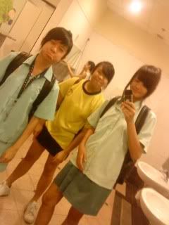 she pei me go cut my hair . ha ! it look so spiky right now >:
